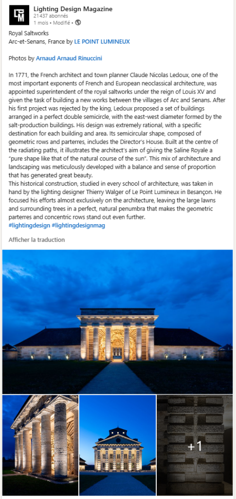 Arc-et-Senans, France by LE POINT LUMINEUX – Article de Lighting Design Magazine.
