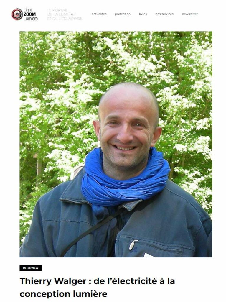 Voici un lien permettant d’accéder à cet article : « Thierry Walger : de l’électricité à la conception lumière »