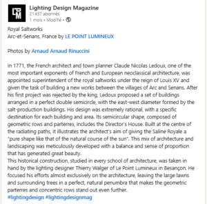 L’agence Le Point Lumineux a réalisé la Mise en Lumière de la Saline Royale d’Arc & Senans, dans