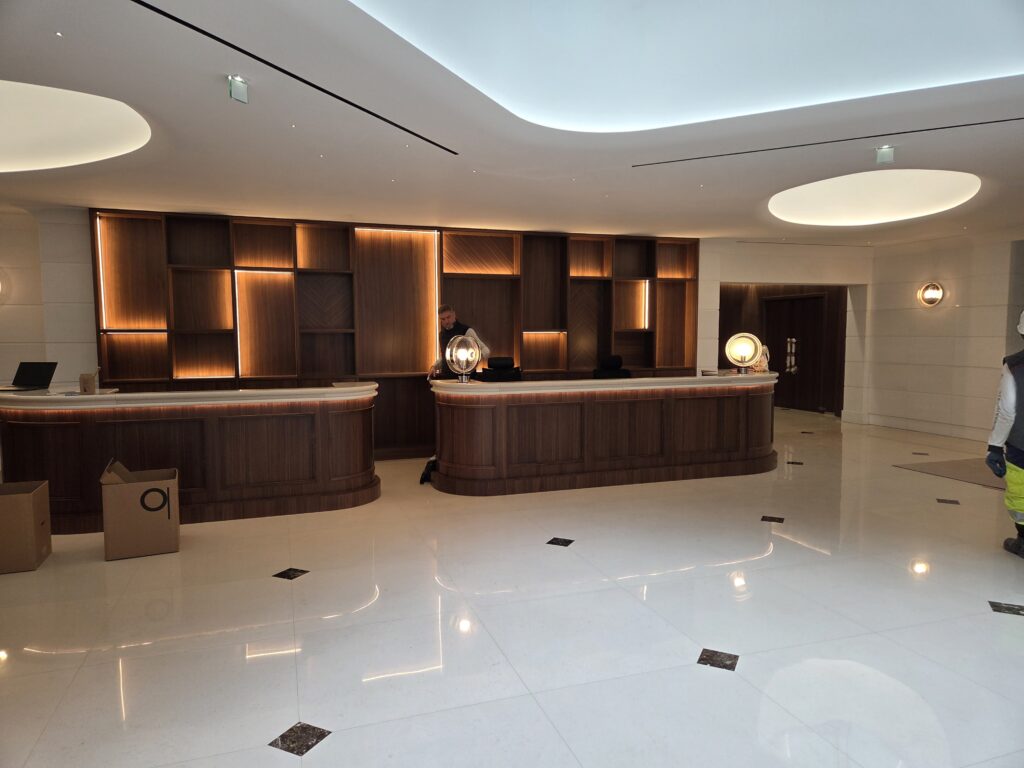 Mettre en lumière l’entrée, le hall des escaliers, le lobby, les lounge area, le coffee corner, le corridor et la réception de cet immeuble de style donnant sur l’avenue des Champs Elysées est une mission prestigieuse car l’architecte est exigente et très conceptuelle. Ici, il faut aussi jouer entre la mise en valeur de l’espace et le confort des usagers.